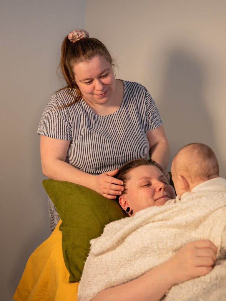 Postpartum-vyöhyketerapia on lempeä ja rentouttava hoito, johon äiti voi tulla, kun hänestä siltä tuntuu.